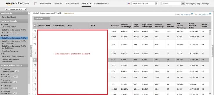 This is a pretty obvious factor to mention, albeit a difficult factor to improve with confidence. Amazon does share units and sessions but does not provide enough data to run A/B tests or even control for specific traffic sources. To find conversion data in Seller Central, navigate to Reports >> Business Reports >> Detail Page Sales and Traffic. Make sure the Unit Session Percentage column is visible. This is simply the number of units ordered divided by the number of sessions your listing received.