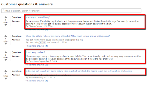 Improve the power of your bullet points by including information that your top competitors don’t provide. A great way to do this is to analyze the “answered questions” for some of your top competitors.