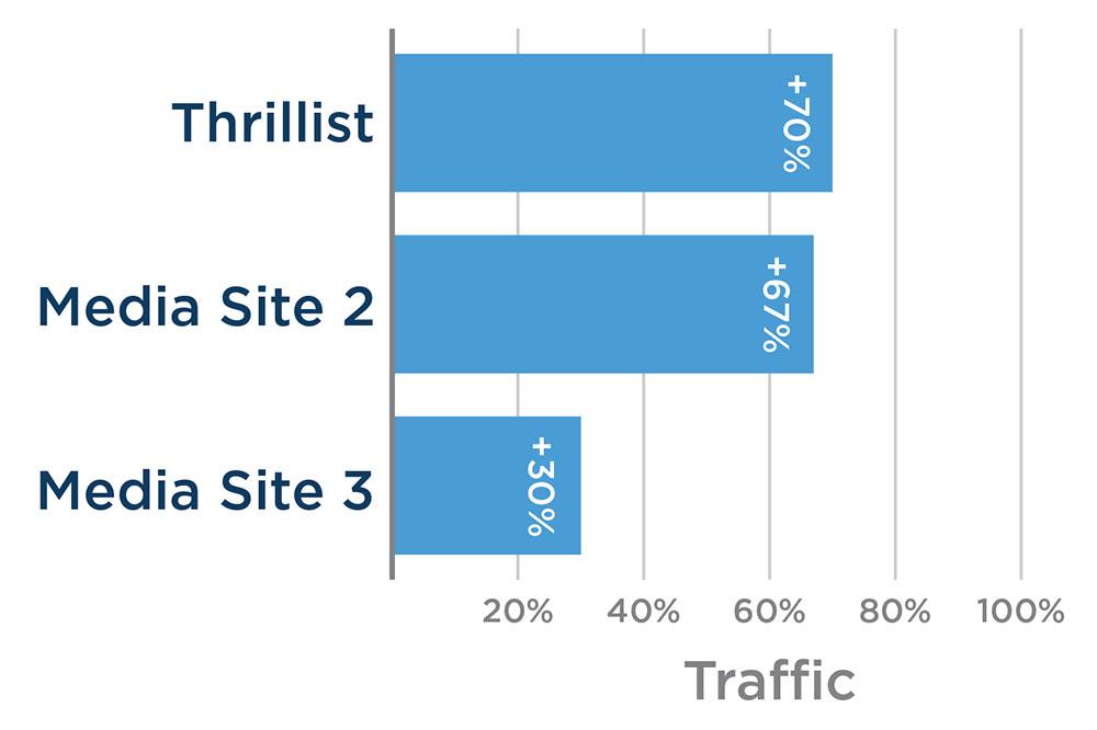 Let’s get right to the results. One site, Thrillist, converted 90 percent of their web pages over a four-week period of time. They saw a 70 percent lift in organic search traffic to their site — 50 percent of that growth came from AMP.