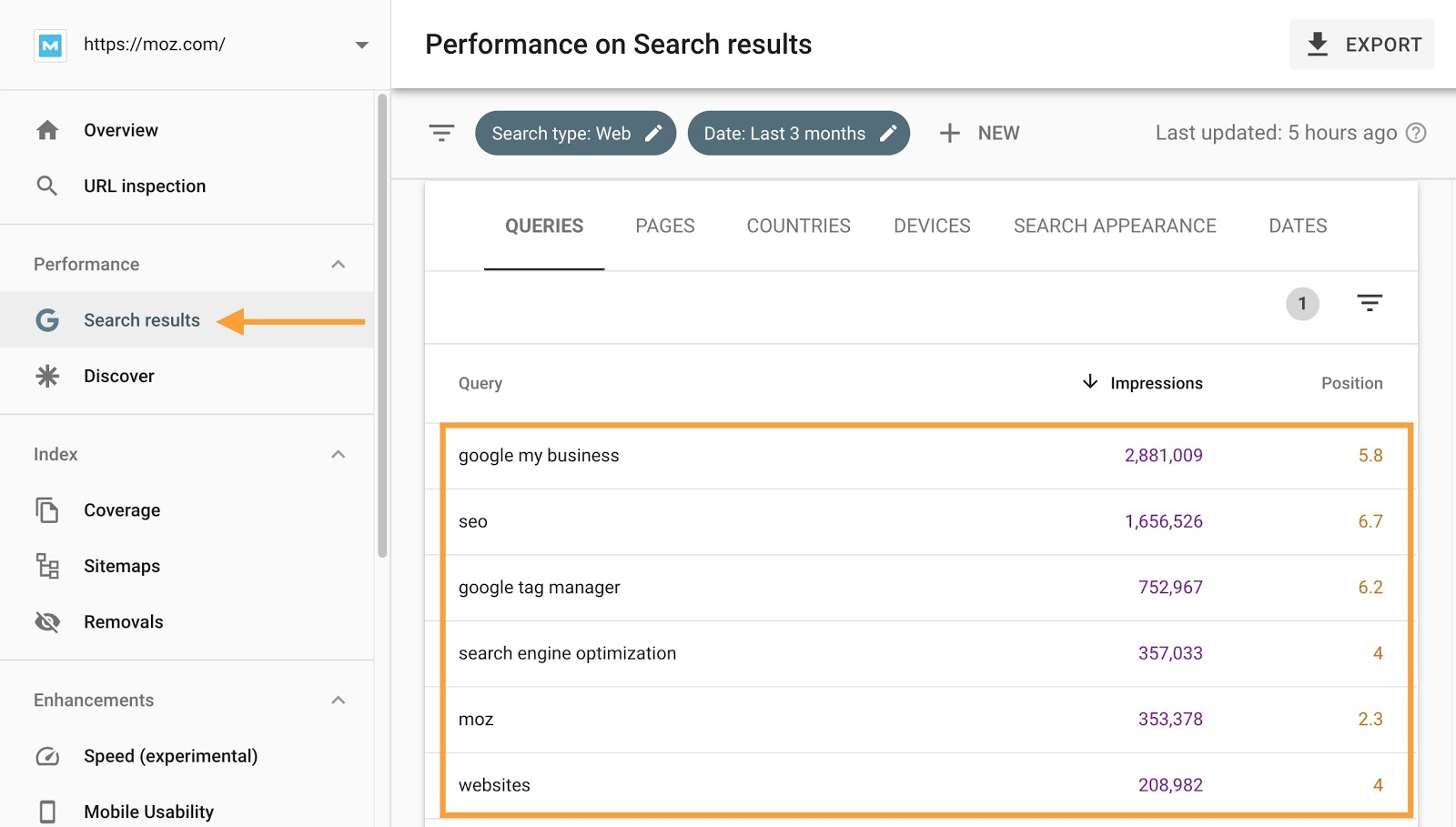 We also show you the exact process and tools we use to extract these seeds, such as Google Search Console (shown below).