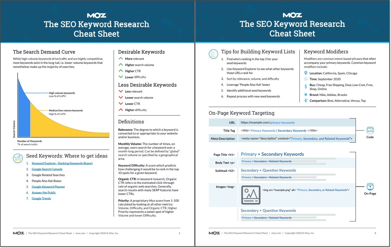 We couldn't squeeze everything in the previous chapters, so we added all our extra resources here. The crème de la crème is the Keyword Research Cheat Sheet. You can download, print, share with your team, or pin to your wall.