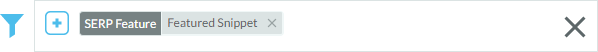 At the top of the page, you can narrow your list by keyword, label, location, or feature. Let's say you just wanted to see keywords with Featured Snippets. Next to the funnel icon at the top, click [+], then select "SERP Feature" and choose one from the list: