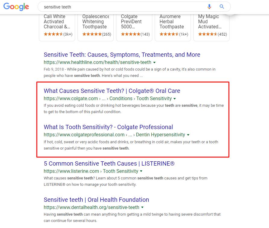 One of these pages is from a separate domain for hygienists and other dental professionals, but it still carries the Colgate brand and further demonstrates Colgate’s investment into this query, signaling this is a quality opportunity.
