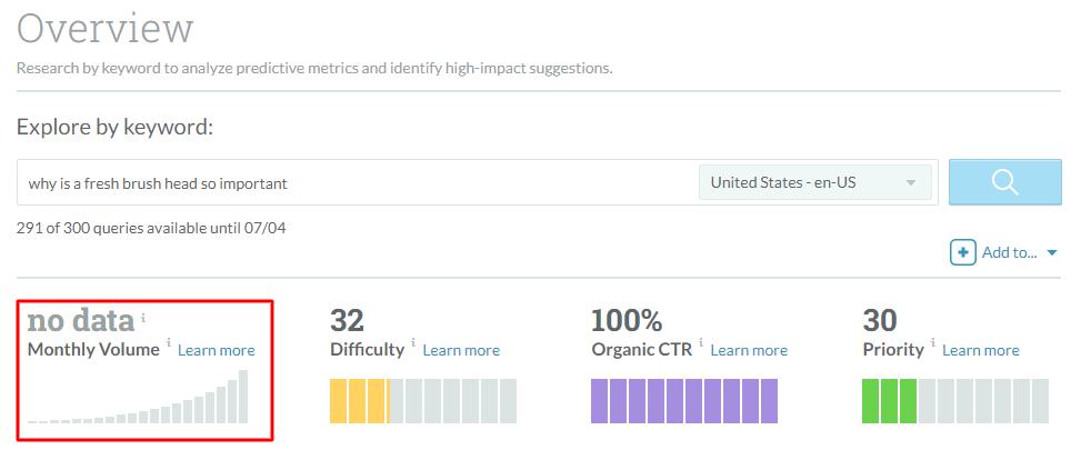 This is a stark contrast to the volume reported by Moz for [why is a fresh brush head so important] which is “no data” (which usually means very small):
