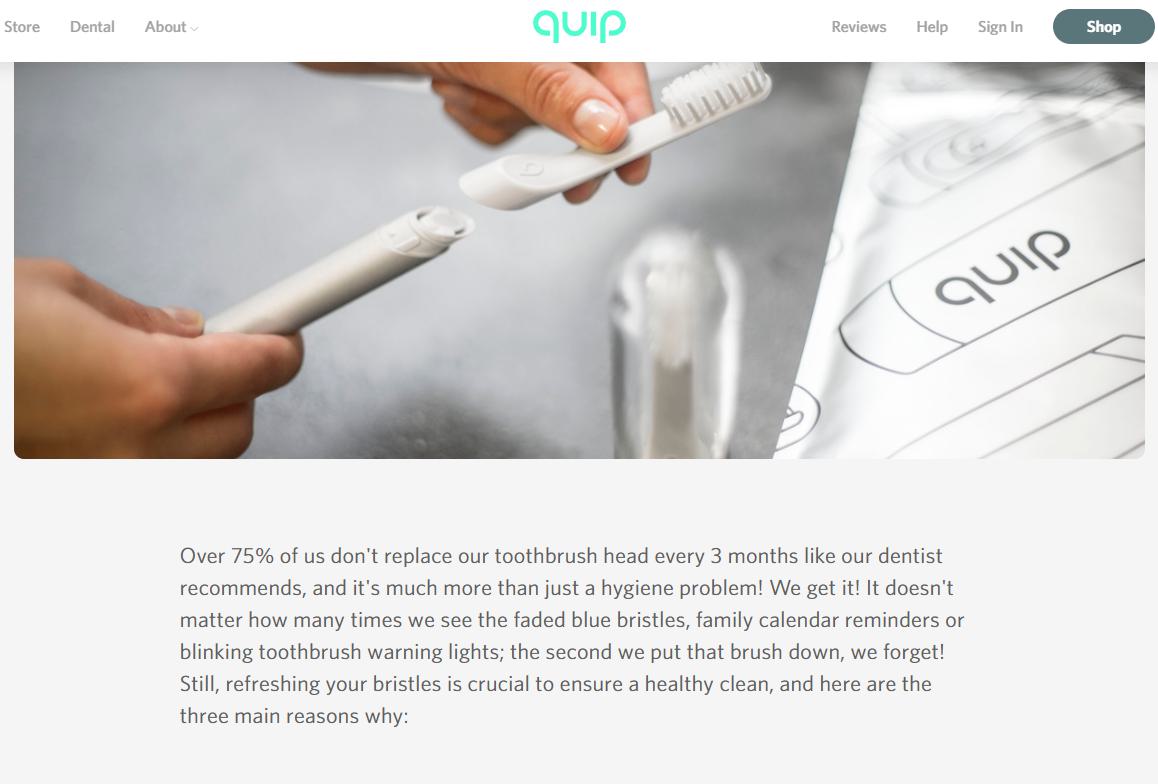 Going back to our Quip example, we see a page on their site that has the potential to be a linkable asset: