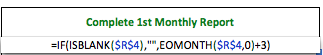 The EOMONTH formula identifies the last day in a given month (which you set the prerequisite date the same as with the Deliverable Date formula). Add "+1" at the end and you're left with the first day of the following month...it's that simple! For our example I've added "+3" as it's often unreasonable to expect monthly reports to be completed on the 1st, but feel free to adjust according to your needs.