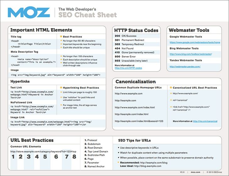 Moz's Web Developers SEO Cheat Sheet provides a visual asset we're quite proud of.