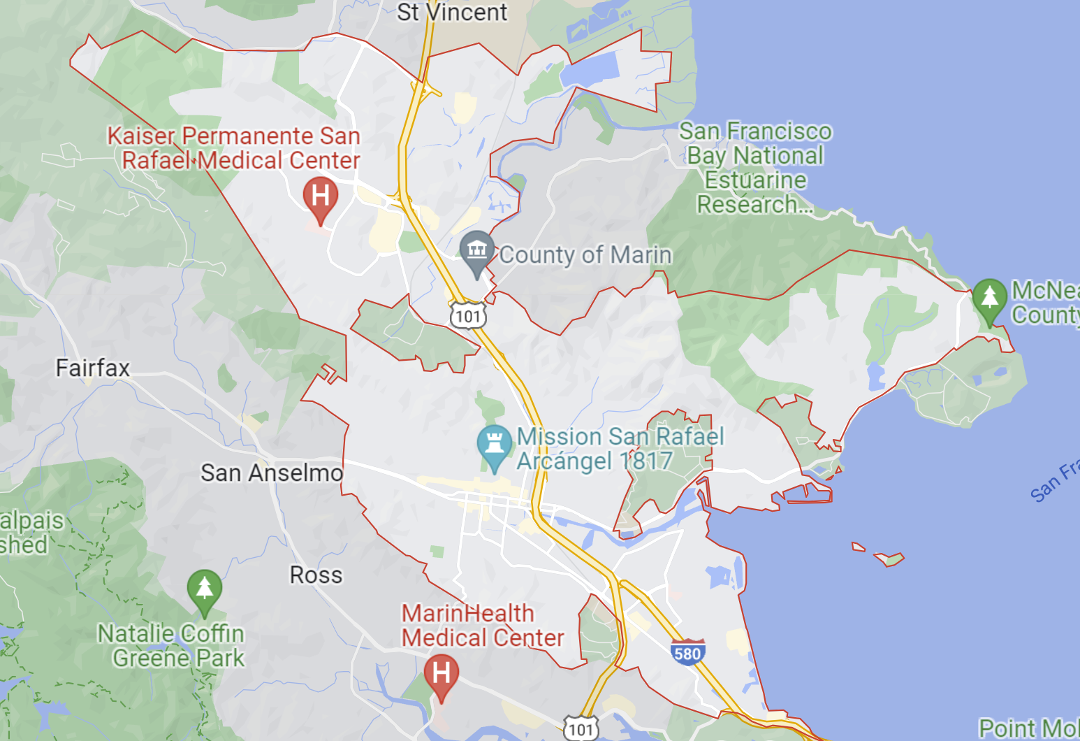 First, look up the city you’re investigating by searching for it on Google and clicking on the map. See if both businesses fall within the red border Google throws around your city. It’s typically harder to rank within any city when a business isn’t located inside of the perimeter.