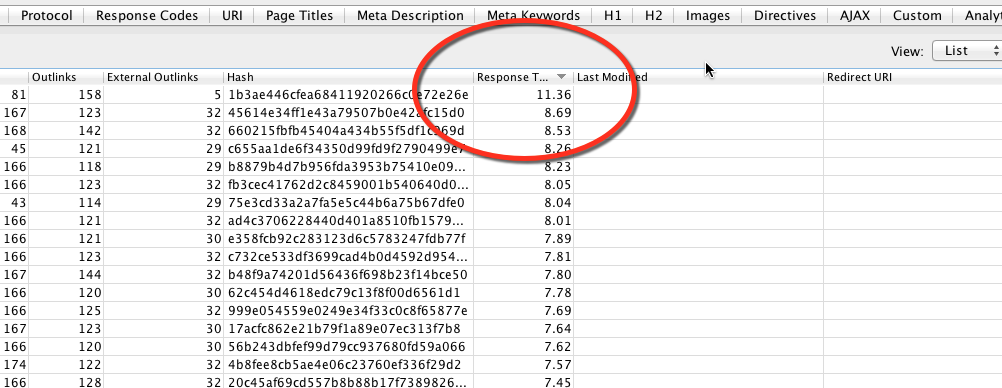 Next you can filter by “Response Time” to find the pages that aren't cutting the mustard.