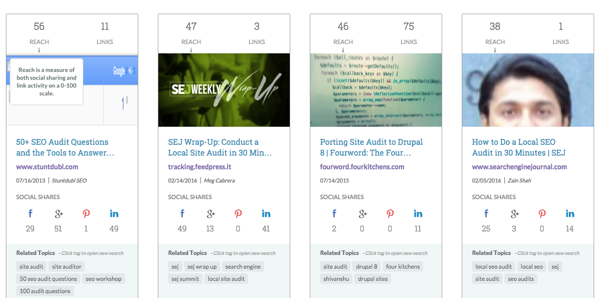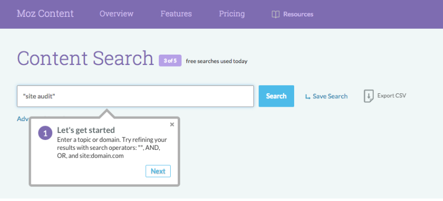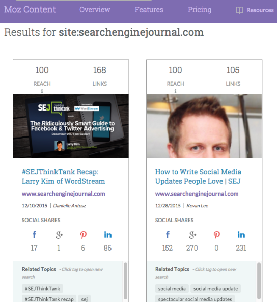 But don’t stop while you’re on a roll! You can also find out even more about your potential competitor by popping their URL into Moz Content. You can run 5 content searches, 25 pages for a site, and 10 results per search on our Freemium plan.