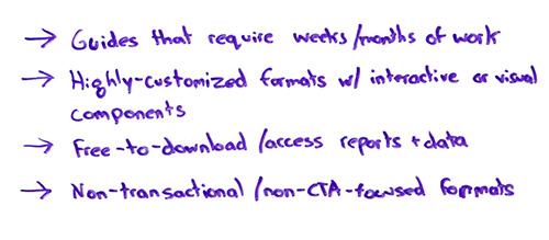 - Highly customized formats that have these interactive or visual components that other people are generally unwilling to invest the effort in to create.