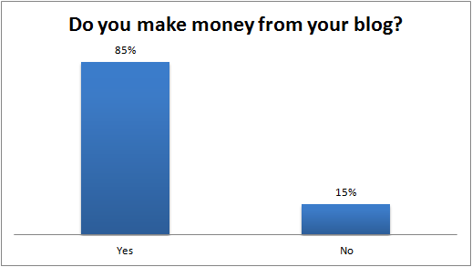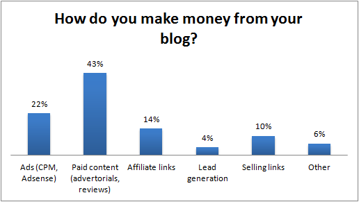 Most of the bloggers are currently making money from their blogs. The largest revenue source is paid content, which was defined as advertorials and reviews.