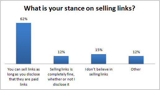 When it came down to their stances on selling links in general, 62% agreed that it was okay to sell links as long as they were disclosed.