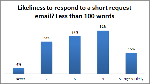 There was no clear answer in regards to likeliness of responding to shorter email requests. This was defined as emails with fewer than 100 words.