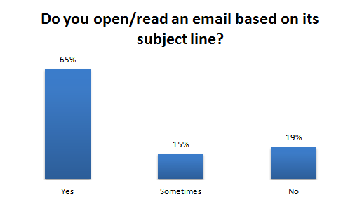 65% will open/read an email based on the subject line alone, and 19% will open/read the email regardless.