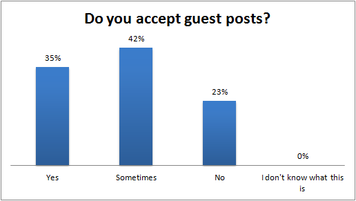The majority response to accepting guest post requests was "sometimes," the reason becomes a bit clearer in the next question.