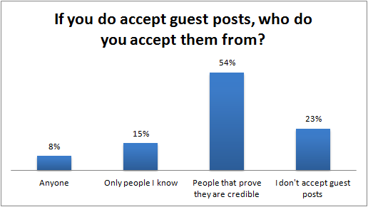 If you can prove that you're credible, 54% of these bloggers were in favour of accepting your guest posts over others.