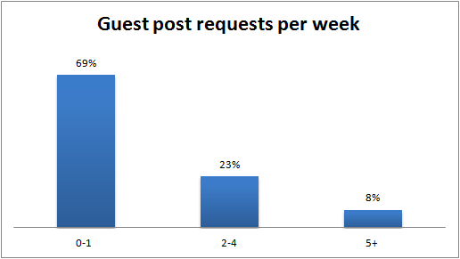 Something that surprised me: Most of the bloggers only received 0-1 guest-post requests per week. It might be helpful to note again that 42% were receiving more than 10,000 visits per month.