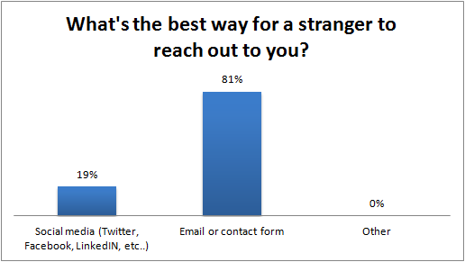 81% of the bloggers preferred to be contacted via email or a contact form on their websites, as opposed to only 19% who preferred contact through social media (Twitter, Facebook, and LinkedIn were given as examples).