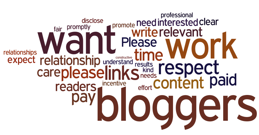 - "Don't expect that we (bloggers) are going to give our time, effort and energy to you for free. You wouldn't work for free so please don't expect us to! Make sure what you pitch is relevant, READ MY BLOG,I'm not just ""a blogger"" I do have a name! It's even in my URL and my email address - how can you get it wrong?