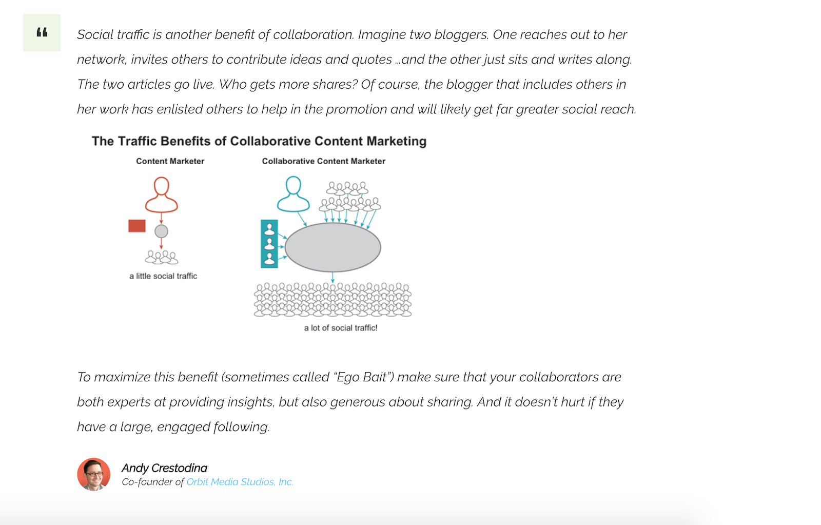 Quoting an expert is one of my favorite ways to boost content linkability and shareability. It’s quick, easy, and doesn’t require a significant time investment. When you write out of your expertise area, adding a quote of a thought-leader grants your content more credibility and value, not to mention boosting its linking potential.