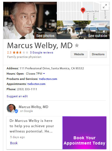 Miriam: Makes sense! Now, I’ve created a fictitious example of what it looks like to use Google Posts to prompt bookings, following your recommendations to use a simple color as the image background and to make the image text quite visible. Does this look similar to what PatientPop is doing for its customers and can you provide recommendations for the image size and font size you’ve seen work best?