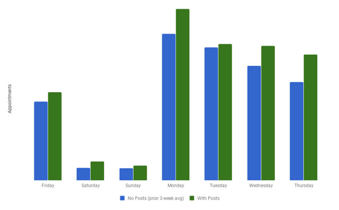 Miriam: Now for the most exciting part, Joel! What can you tell me about the increase in appointments this use of Google Posts has delivered for your customers? And, can you also please explain what parameters and products you are using to track this growth?