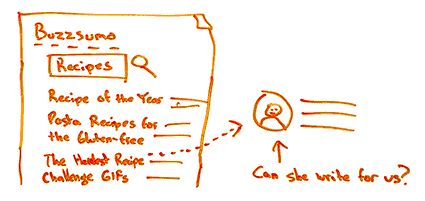 So if you can use a tool like BuzzSumo — that would be generally what I'd recommend, there's a few others, but BuzzSumo is really great for this — you can search for, for example, recipes and see the most shared content in the recipe world in, say, the last three months. Then we can identify, "Oh, here we go. This person wrote the hardest recipe challenge gifts. Oh, all right. That did really, really well. I wonder if we can see who that is. Oh look, she does freelance work. I bet she can write for us."