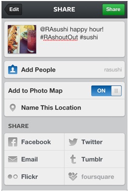As previously mentioned, Instagram makes it incredibly easy to link to a brand’s various social media accounts. After a quick and easy setup, brands (and regular users) can post their Instagram pictures to Facebook, Twitter, Tumblr, Flickr and Foursquare. They can also add a location to tag a specific store, restaurant, office or otherwise to further enhance the brand’s image. With so many options for sharing, brands would be smart to take advantage of this built-in feature.