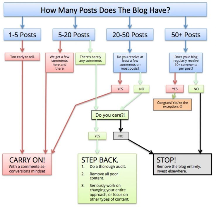 You can use this simple number to measure blogging success (or failure). For any company currently running a blog, follow this flow chart to see if you're on track: