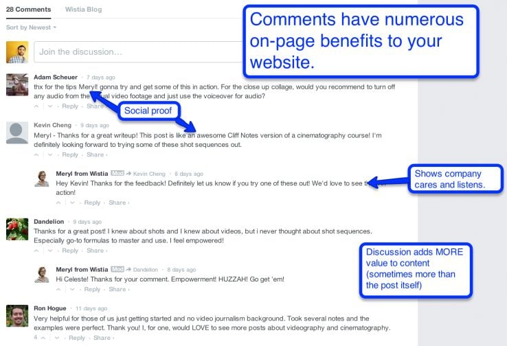 - Discussions often add extra value to your content.