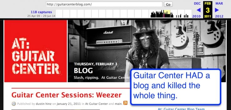Let's look at Guitar Center. They actually had a blog a one point;