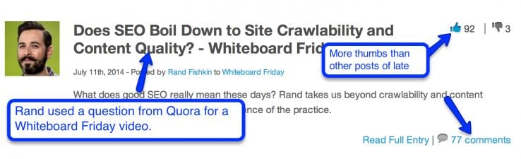 Chances are if someone is asking debatable/controversial questions in Quora, this is going to generate some discussion. You can answer this on your blog and bring some discussion with you. And that's exactly what Rand did here: