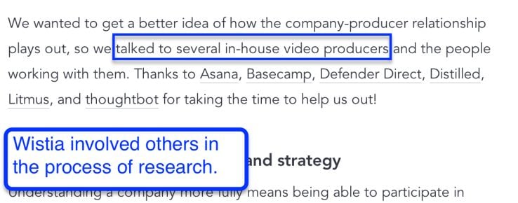 As I keep reiterating, blogging is a two-way communication platform. Wistia here shows us how they involved other companies in the creation and research process;
