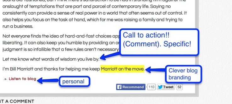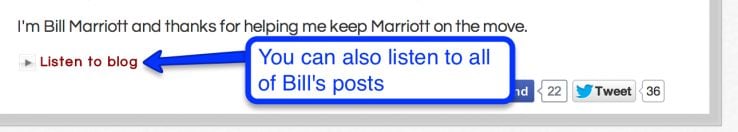 Back to Bill Marriott's blog - you can also listen to all of his posts, which is a nice personal touch as well;