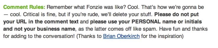 His readers know that nothing uncool is accepted. This makes everyone WAY more comfortable to comment. They know things won't get out of hand.