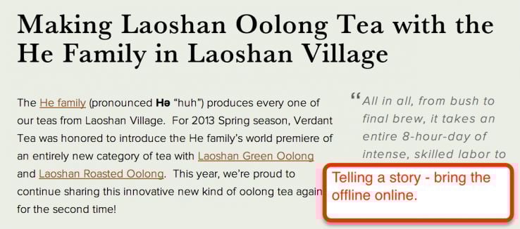 Another superb example of bringing an offline story to online is Verdant Tea;