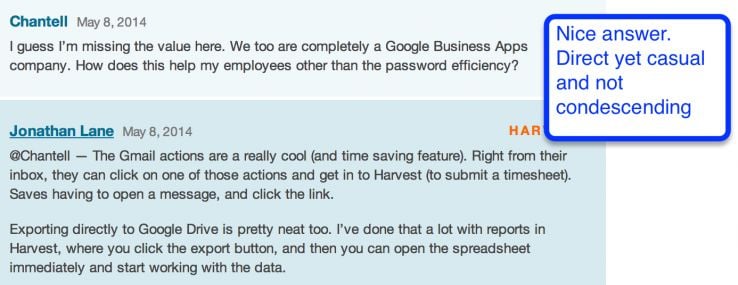 Harvest, however, is very attentive to their customers' questions;
