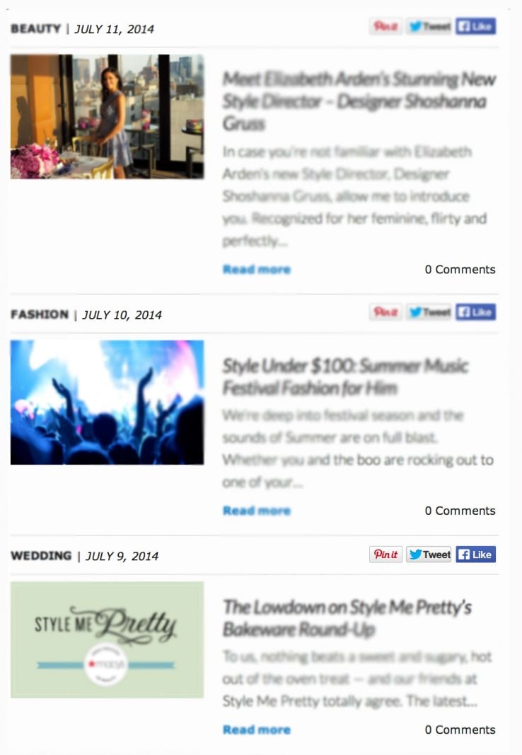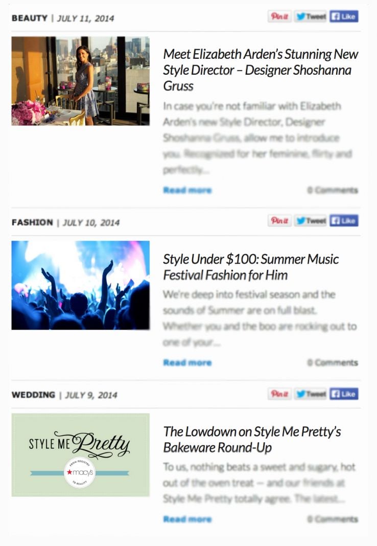 Let's look at it another way. Here's a the blog homepage of a known brand. Most people probably see it like this: