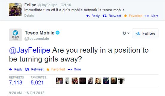 This is how @TescoMobile responded when someone described their network as a 'turn off':