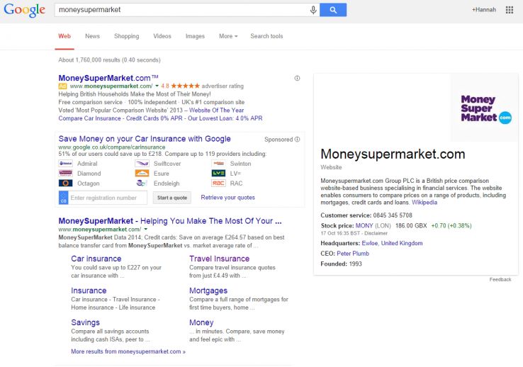 MoneySuperMarket's organic listing is above the fold, but Google is nonetheless being very aggressive.