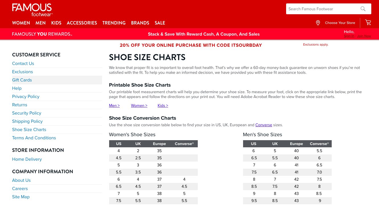 As an example, I searched “shoe size chart,” which, according to Keyword Surfer, gets 49,500 monthly searches in the U.S. alone. Here’s one of the top results from Famous Footwear:
