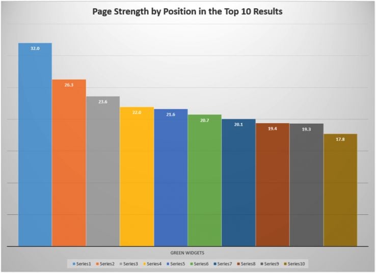 As you can see, across a large dataset there is a really nice degradation of strength in the top 10 results, a real vindication that the data we are looking at is rational and is a good indicator of how strong you need to be to rank a given page (providing the content is sufficient and focused enough).