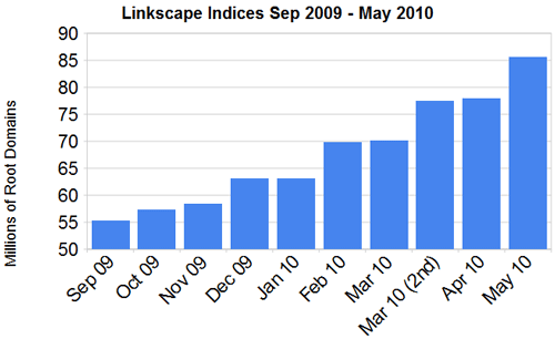 I've also embedded a chart below showing Linkscape's raw index URL count: