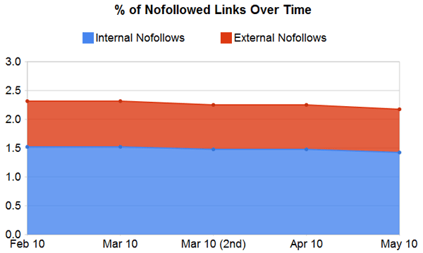 It would appear that the nofollow directive is falling out of favor, as evidenced by the chart below:
