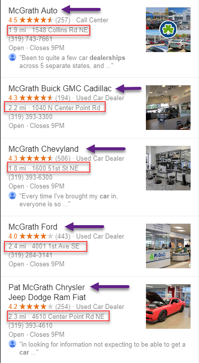Also, if you look at the car dealerships in your city, you will probably find at least one dealership with multiple locations. These multi-location family of dealerships may be in the same city or in surrounding cities.