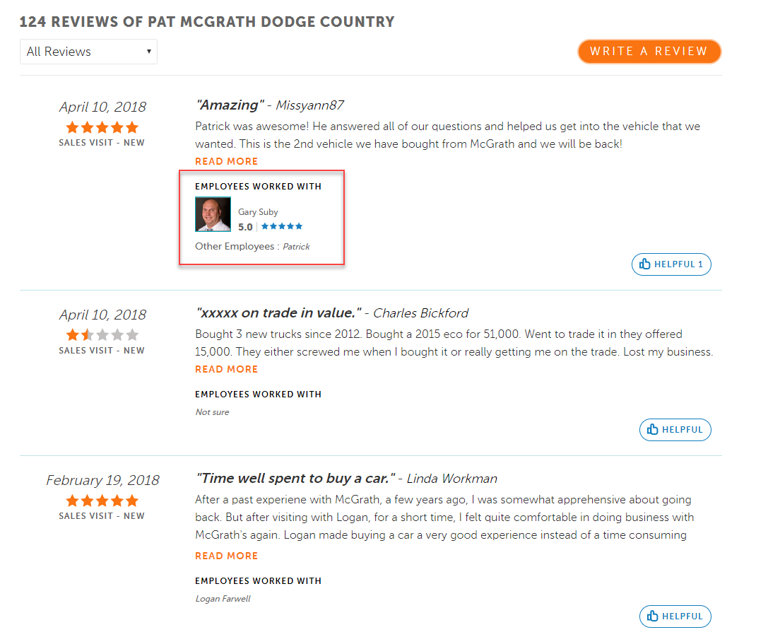 Online reviews are important. If your dealership has bad reviews, people are less likely to trust you. There are dedicated review sites for vehicle reviews and car dealership reviews. Sites like Kelley Blue Book, DealerRater, Cars.com, and Edmunds are just a few sites that make it easy for consumers to check out dealership reviews. DealerRater even allows consumers to list — and review — the employees they worked with at a particular dealership: