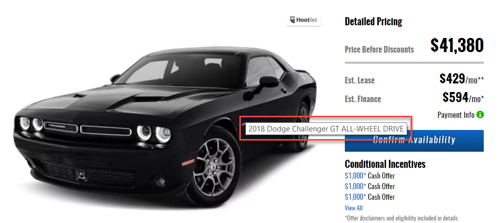For instance, if you’re showing the interior of the 2018 Dodge Challenger, you may want to name the actual picture image file “picture-of-dodge-challenger-2018-awd-front-seat-interior.png” and use the alt tag “Pictures of Dodge Challenger 2018 AWD Front Seat Interior for Sale in Cedar Rapids.”