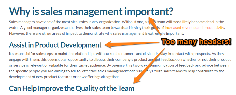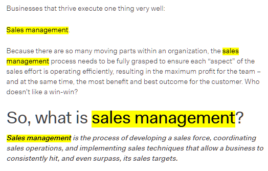 After the article went live, we realized that we had heavily over-optimized it for the term “sales management.” It occurred 48 times throughout the article, too much for a 2,500 word piece.