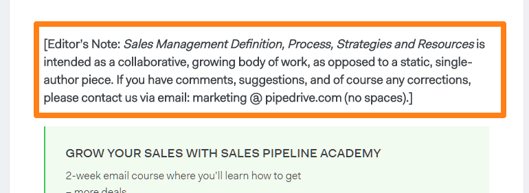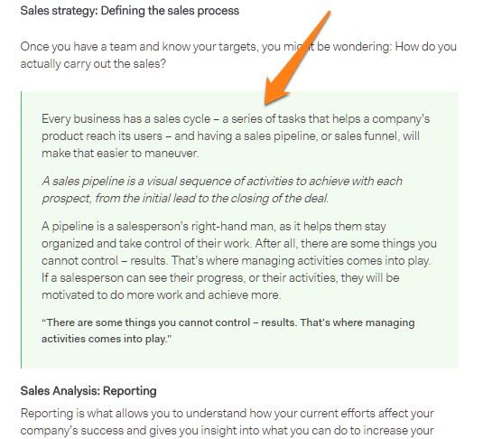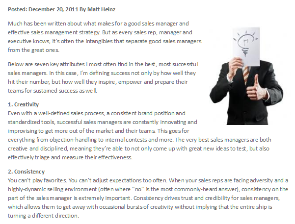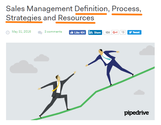 To get there, we started by reviewing every article ranking for “sales management,” noting what we liked and what we didn’t.